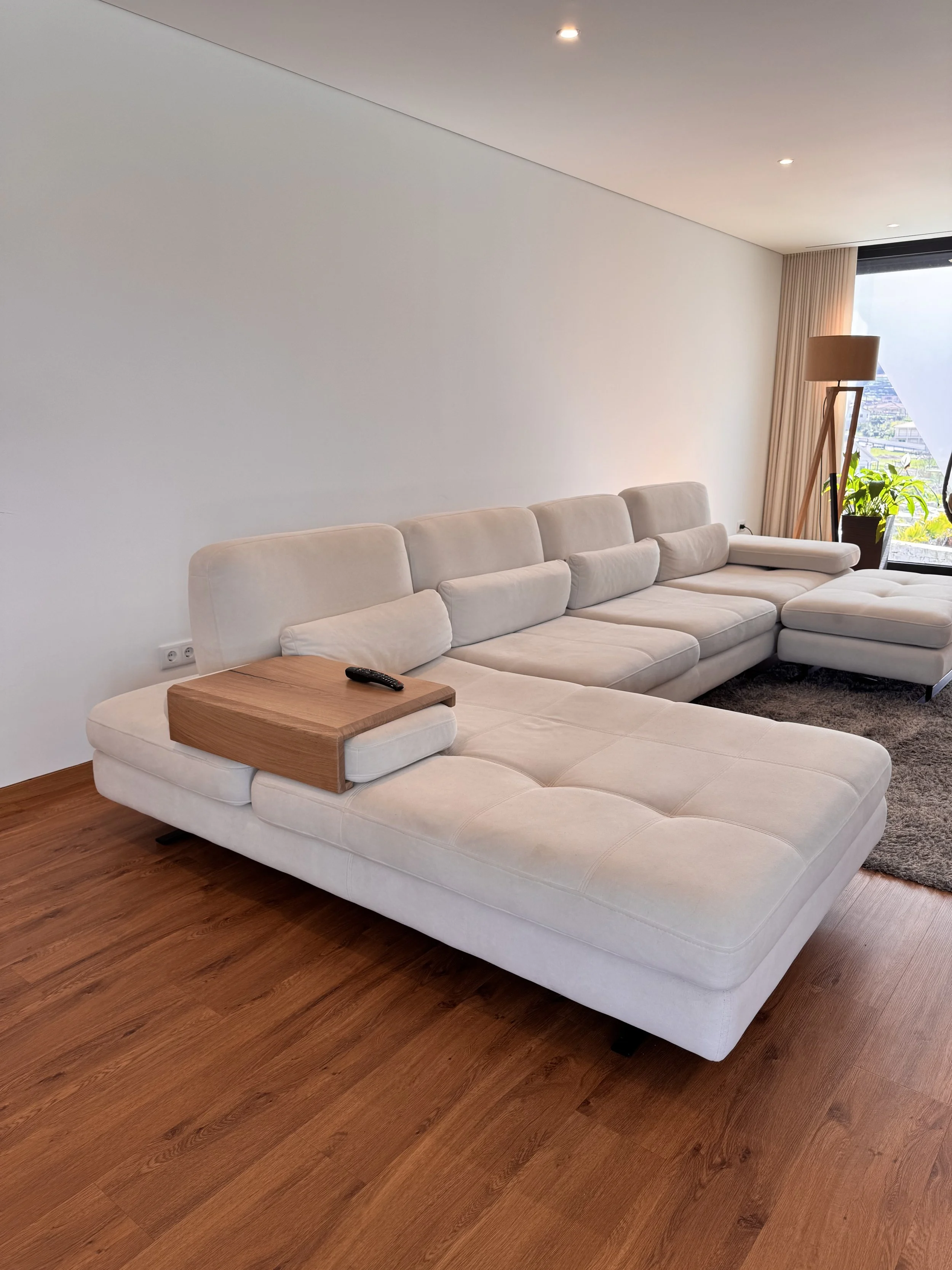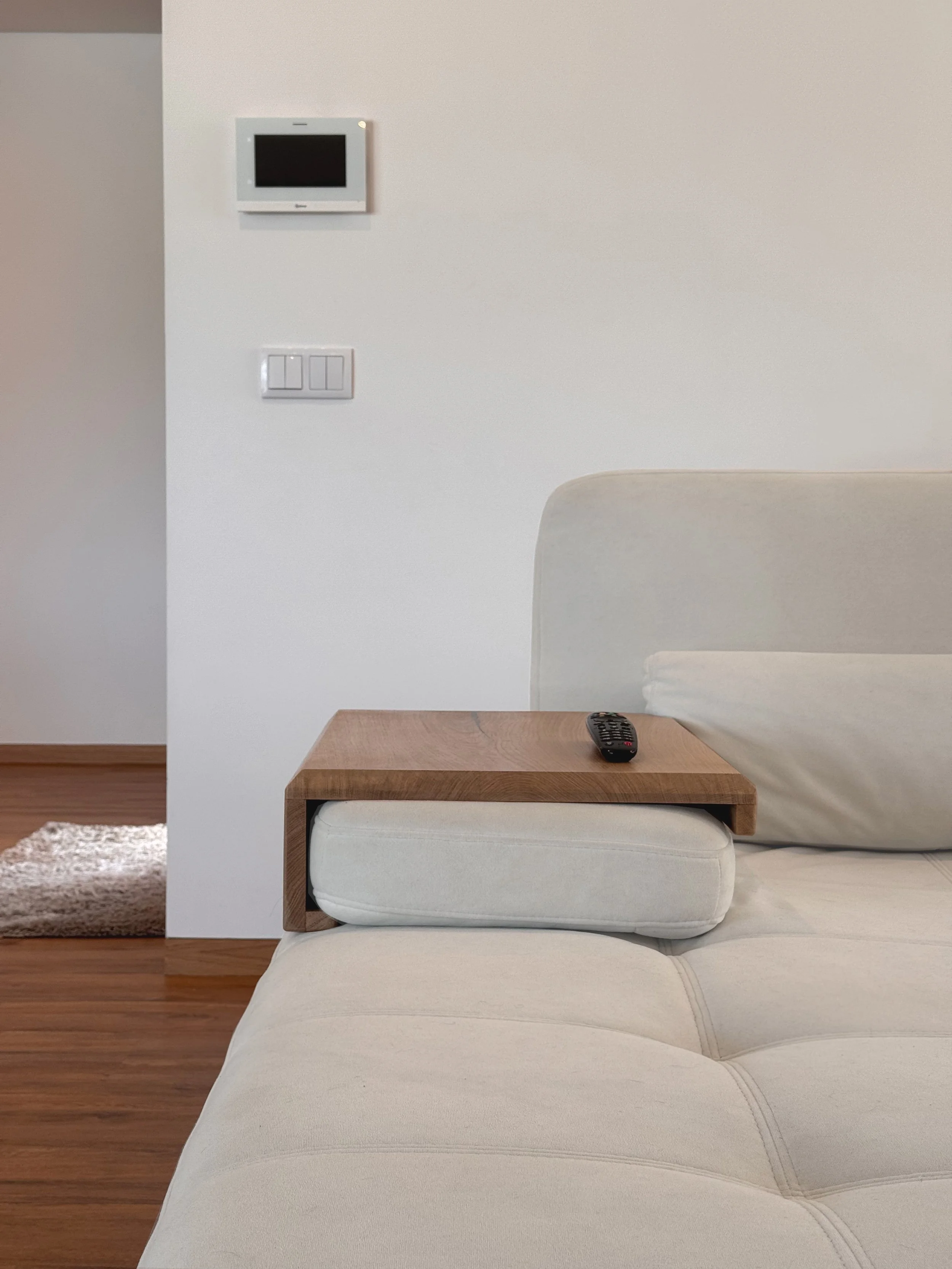 I made this armrest tray to add a simple, stable surface where you relax most. It sits securely over the sofa arm, bringing a small piece of solid oak into daily use - a place for a book, a cup, or the evening ritual.
